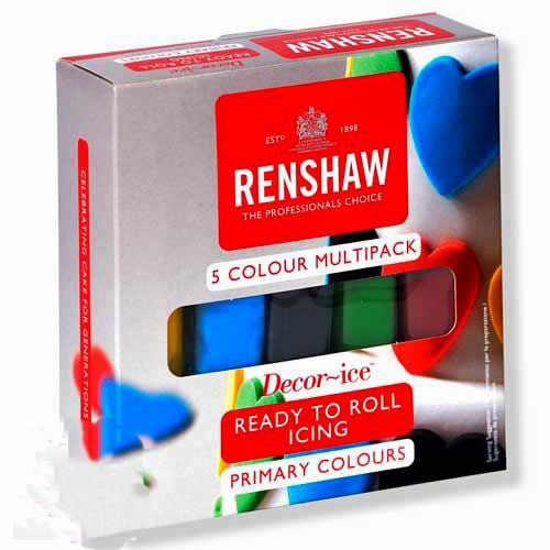 5 Colori Primari. Giallo, Blu, Nero, Verde e Rosso. Pasta di zucchero. Renshaw. Confezione da 5 x 100 gr. Senza Glutine