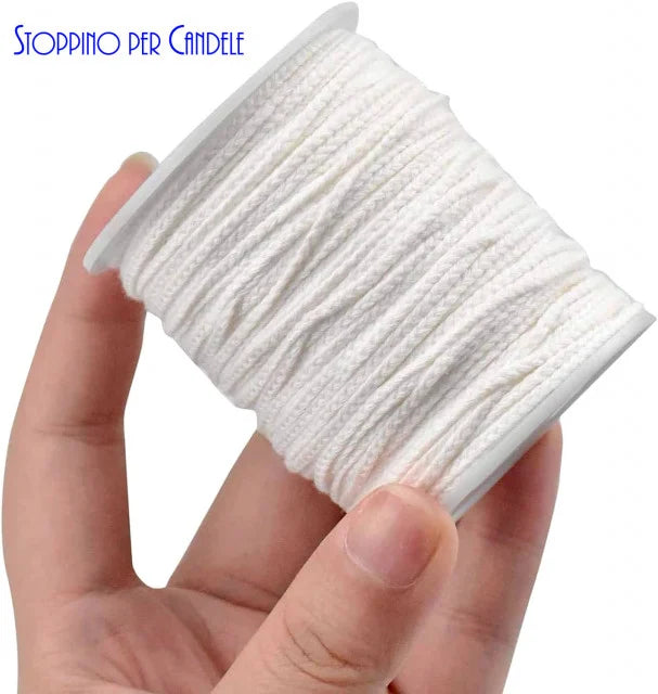 Stoppino in Bobina di 61 metri di spessore circa 2.5 mm. Cotone bianco intrecciato Wick di 24 wire per Candele. Lo stoppino è realizzato in filo di cotone naturale e non contiene piombo, zinco o altri metalli. Brucia senza fumo ed è sicuro per l'ambiente consentendo allo stoppino di bruciare costantemente per lungo tempo. Per fare una candela, devi fissare lo stoppino della candela in una posizione corretta. Versare la cera fusa nella bottiglia di candela, fino a quando non si solidifica, quindi tagliare la lunghezza dello stoppino della candela. Mettere in luogo asciutto per mantenere buone condizioni di utilizzo e poi arrotolarlo bene per conservare.