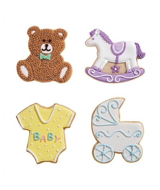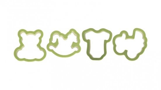 Kit di tagliapasta in plastica della decora a tema Baby. Il kit comprende 4 tagliapasta, divertitevi a realizzare biscotti e a decorarli con pasta di zucchero e ghiaccia reale. Dimensioni: cm 7.5 - 9 x h 3