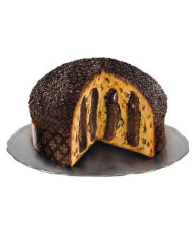 1 PANETTONE DA 950g FLAMIGNI CON GOCCE DI CIOCCOLATO FONDENTE E CREMA AL CIOCCOLATO FONDENTE, RICOPERTO DI CIOCCOLATO FONDENTE, SENZA CANDITI E UVA SULTANINA.