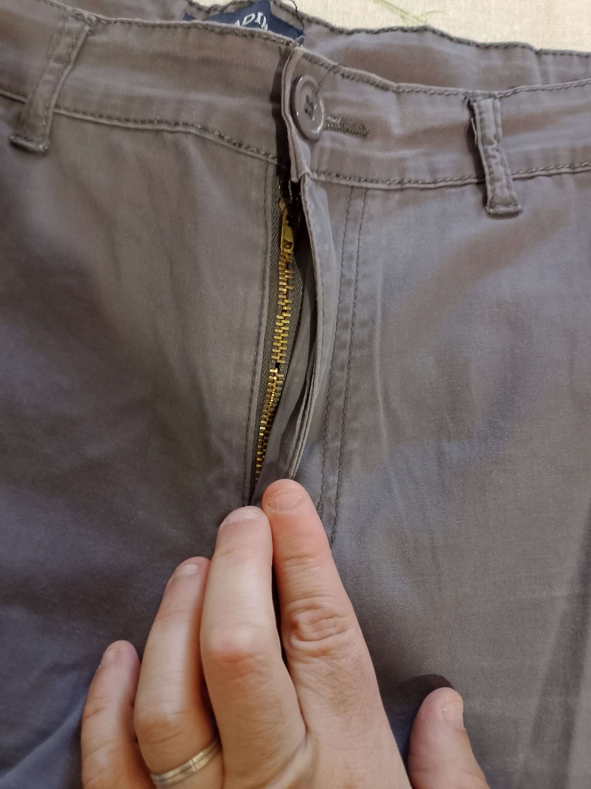 - Chiusura con zip e bottone. - Colore GRIGIO - Taglia 52/L. - 2 tasche avanti/2 laterali/2 dietro - leggero 100 % cotone