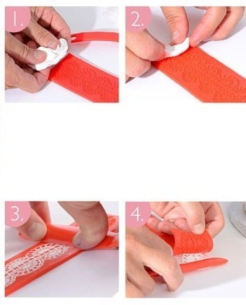 2. Posizionare la pasta «Sweet Lace Express» sul lato corto dello stampo rosso