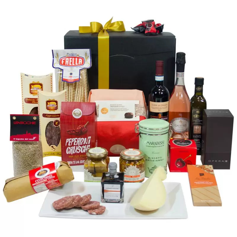 Raffinati gourmet è una delle nostre migliori ceste natalizie, composta da una scatola elegante rifinita con nastro in raso contenente una selezione dei migliori prodotti gastronomici provenienti da tutta Europa.