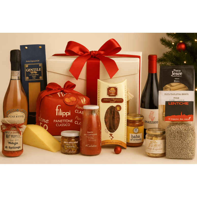 Questa strenna non è solo un dono: è un viaggio nei sapori autentici del Meridione, rustici e raffinati al tempo stesso, capaci di far rivivere a chiunque la magia di una tavola meridionale.