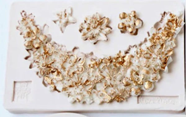 Flowers and Pearls. 12 cm Floral Necklace Border. Silicone Mold.