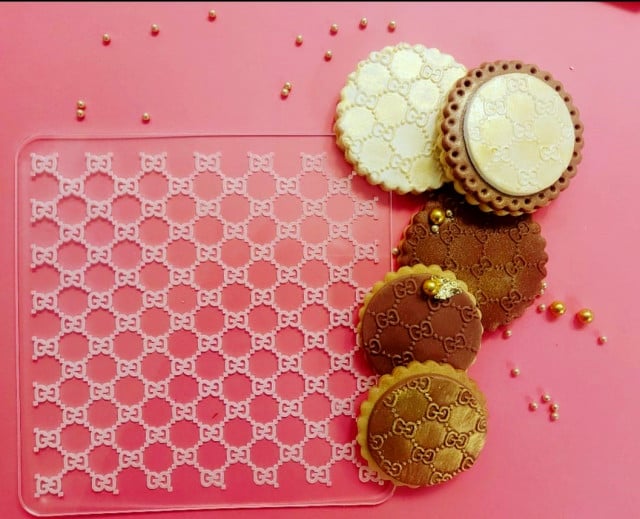 Embossed engraving mold for making fantastic cookies or cakes. These molds can be used to easily create decorations with sugar paste, gum paste, marzipan, shortcrust pastry for your desserts, cakes, cupcakes, and cookies. The molds are new. Code: 5/22. Mold dimensions: 20 x 20 cm. Logo dimensions: 1.2 x 0.8 cm