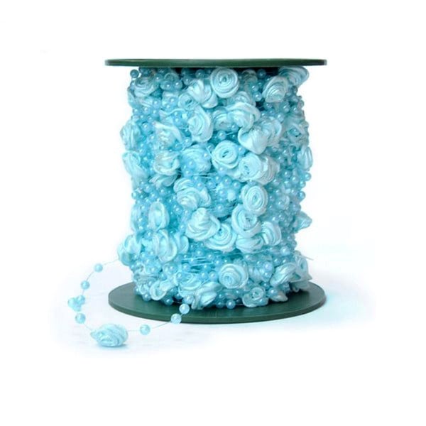 Filo Perle con Rose Celesti. 5 metriDimensioni: Diametro Rosa circa 12 mm, Diametro Perle circa 4 mm. Cod: 1.69/20
