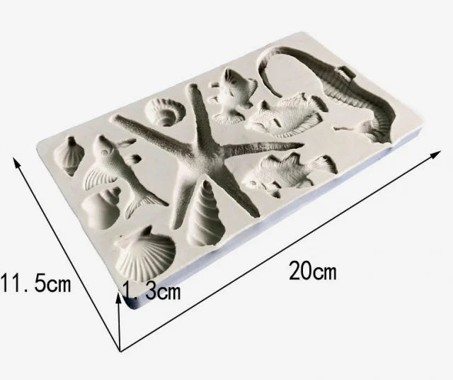 Stampo Mare. Pesci Conchiglie Cavalluccio e Stella marina in Silicone ad alta definizione.