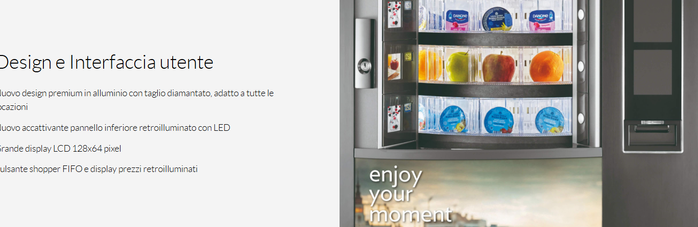 Gusto Drum è la soluzione ideale per le locazioni che necessitano di un servizio continuo 24 su 24, 7 giorni su 7. Non un semplice distributore, ma una vera e propria mensa automatica. L'estrema flessibilità di configurazione permette all'utente di scegliere tra snack, drink, piatti freschi, frutta e yogurt.