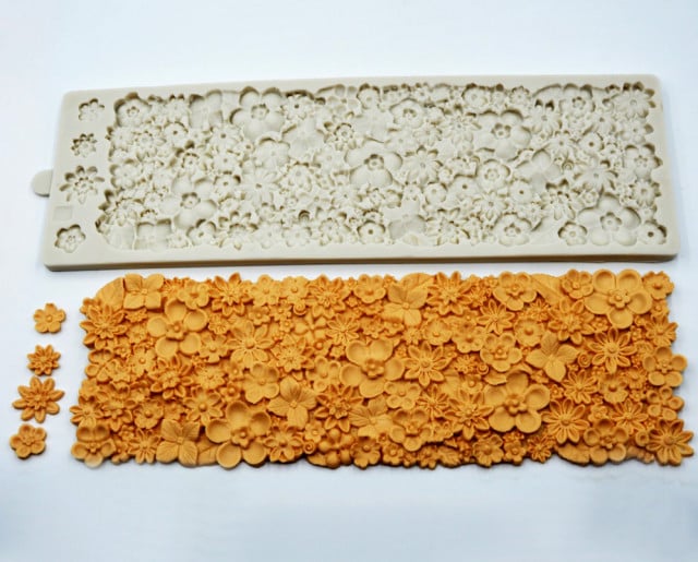 Fiori. Grande Stampo Bordo Floreale di 37 x 12 cm in silicone con molti Fiori